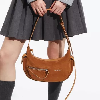 Suede Crescent Shoulder Bag – Chic and Elegant Handbag